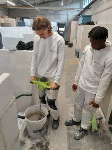 Au programme : manipulation de mortier de préparation, différents ragréage de sols, application de primaire d’accrochage et réparation de fissure.